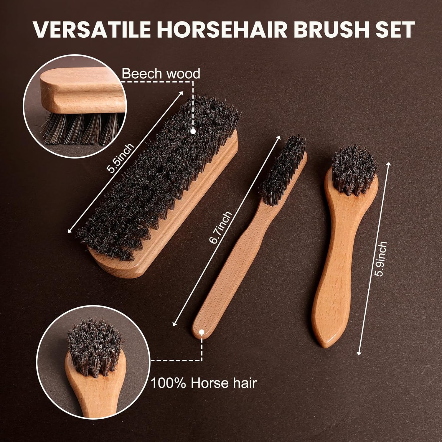 10Pcs Leather Care Kit- 3Pcs Horsehair Brushes, 1.76oz Saddle Soap, 1.76oz Mink Oil and Wax Waterproofer