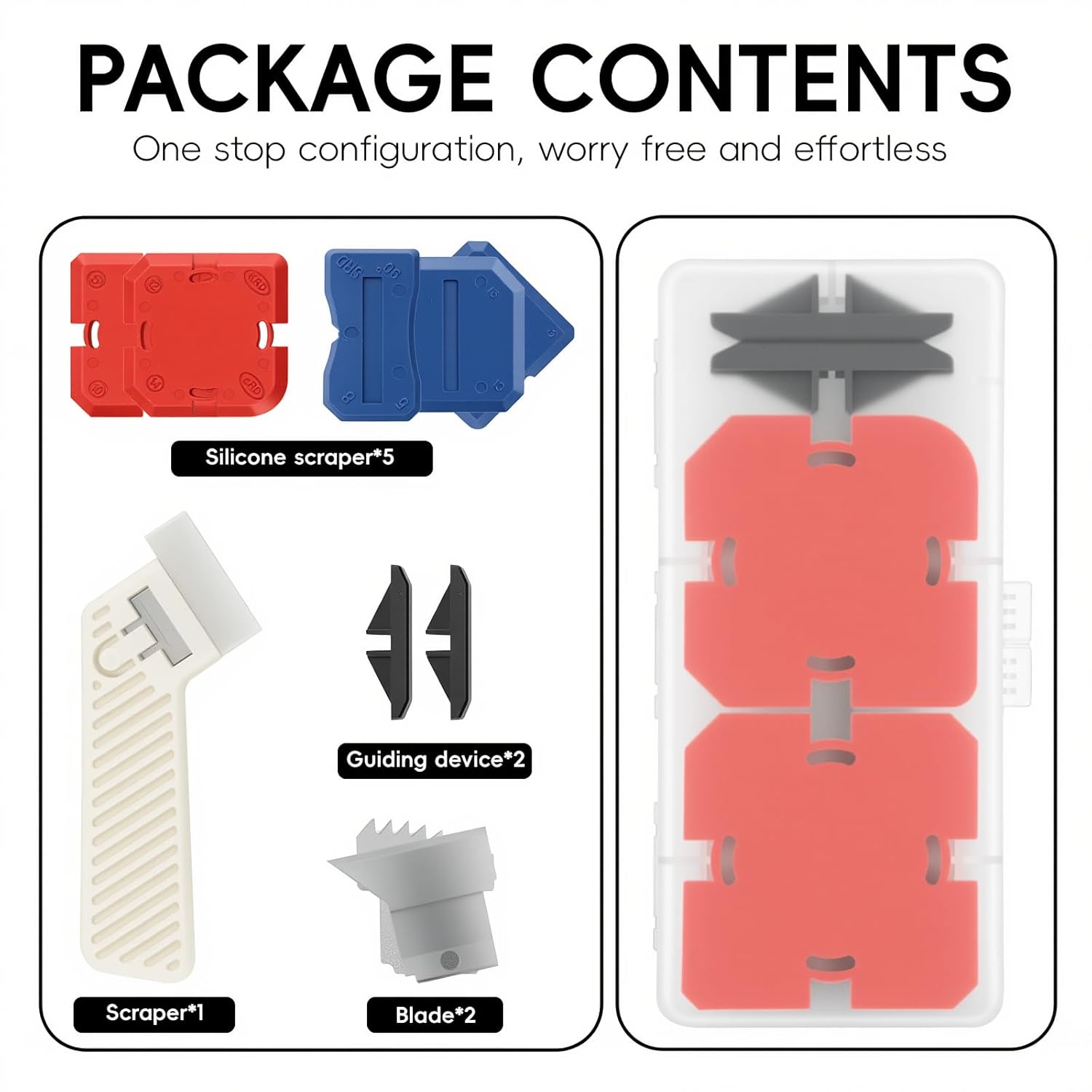 Complete Kit Contents: This 11-piece set includes 5 pcs caulking tools finishing tools, 2 pcs guide tools, and 3 pcs scrapers with replaceable stainless steel edges. Together, they provide everything you need to strip, shape, and renew sealant lines.