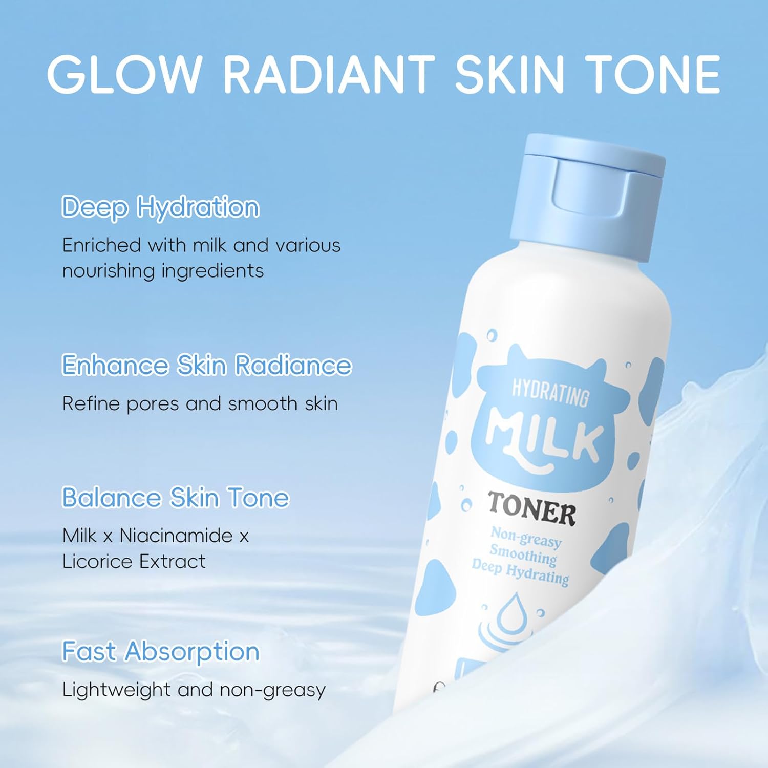 【Nourishing Milk Extract Formula】Enriched with nourishing milk extracts and natural vitamins, this milk skincare delivers deep hydration for soft, smooth skin; The gentle formula helps reduce acne, minimize pores, and boost skin elasticity, revealing a healthy, youthful glow for girls skin care for kids age 8-12