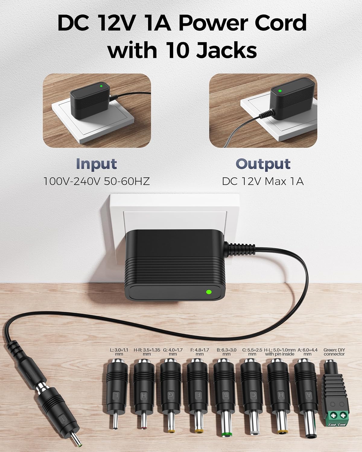 10 Interchangeable Jacks: 10 Pieces different sizes replacement plug jacks which can be used for most of your dc in 12 v power cord devices. Each Jack has a corresponding size and is not suitable for all devices. Please confirm before order that you have a compatible jack with your device to avoid wasting your valuable time
