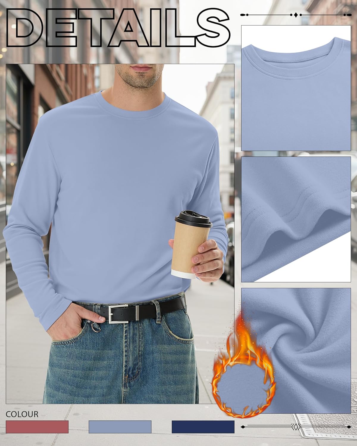 3 Pack Mens Long Sleeve Shirts Crew Neck Thermal T-Shirt Thick Pullover Basic Tops Casual Comfortable Sweatshirt