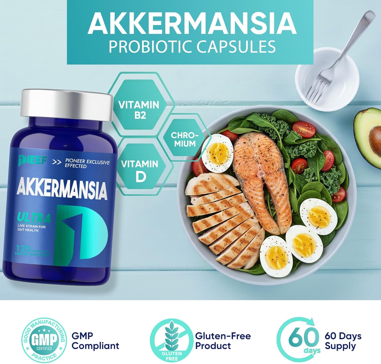 Dual Gut Health & Immune Support: Formulated with Akkermansia, this probiotic works to gently balance gut microbiota, strengthen digestive function, enhance nutrient absorption, and fortify the gut barrier, thereby supporting immune and boosting overall vitality.