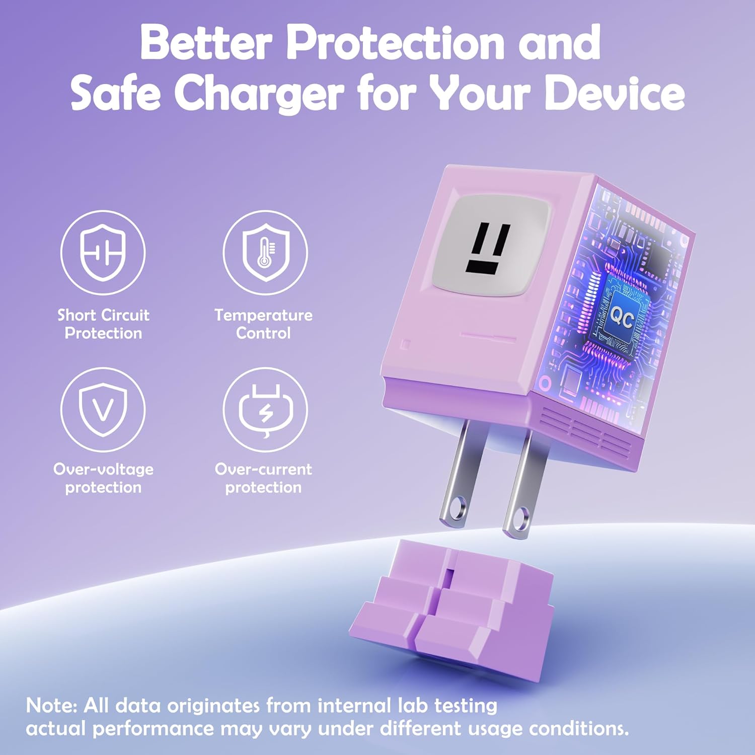 Intelligent Power Allocation: The dual USB-C charger block with 2 ports (USB-C&USB-A) can charge devices simultaneously. Supports PD 3.0 and QC 3.0 fast-charging. When used alone, it can deliver up to 30W to quickly recharge large devices; when shared, it automatically adjusts to dual 15W outputs for efficient charging of both devices. Dual charging. Fast and effortless. Package include: 1x Mini Robot iPhone USB Charger, worry-free warranty, and friendly customer support.