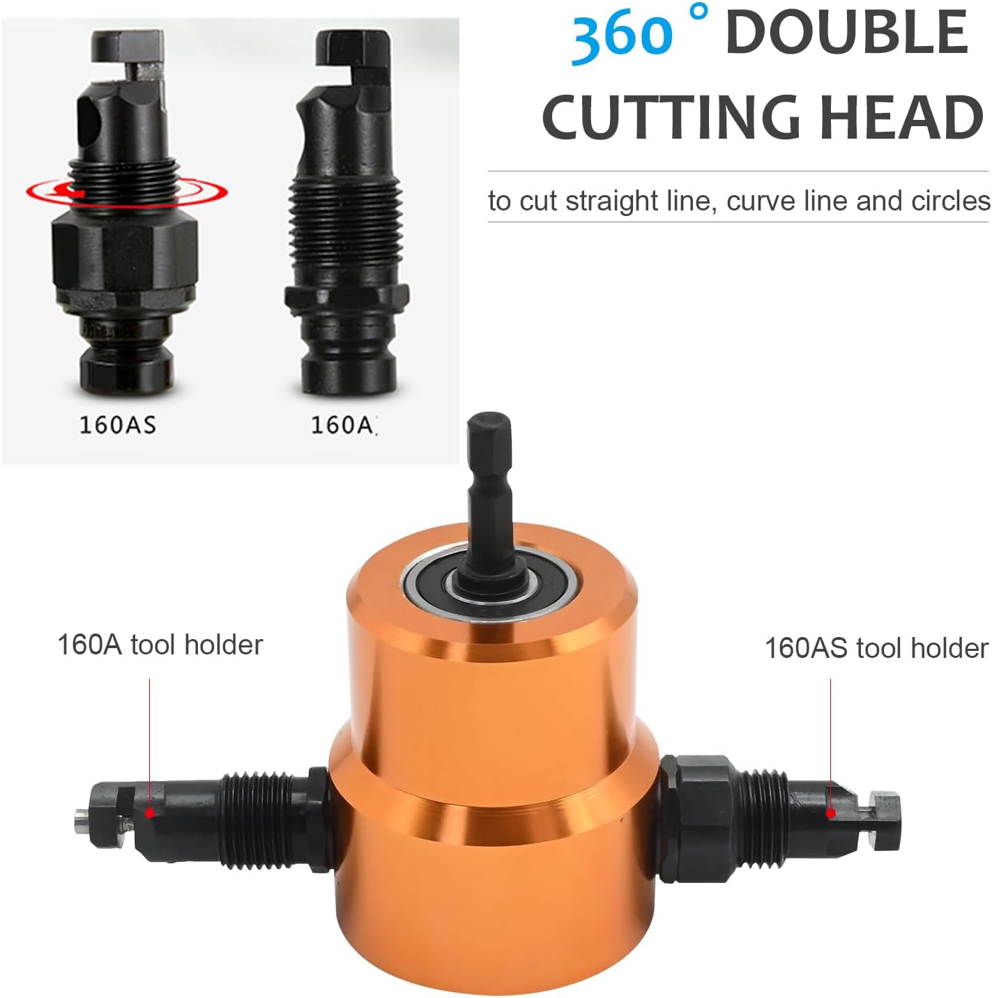 360 Degree Double Headed Sheet Metal Nibbler Drill Attachment Metal Cutter with Extra Punch and Die, 1 Cutting Hole Accessory and 1 Step Drill Bit