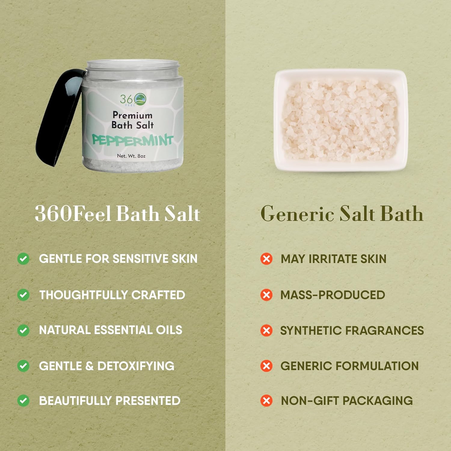 360Feel Peppermint Detox Bath Salt Body Scrub – Great Exfoliating Bodyscrub for Acne Scars Stretch Marks Foot Scrub Great For Women Body – 8 Fl Oz