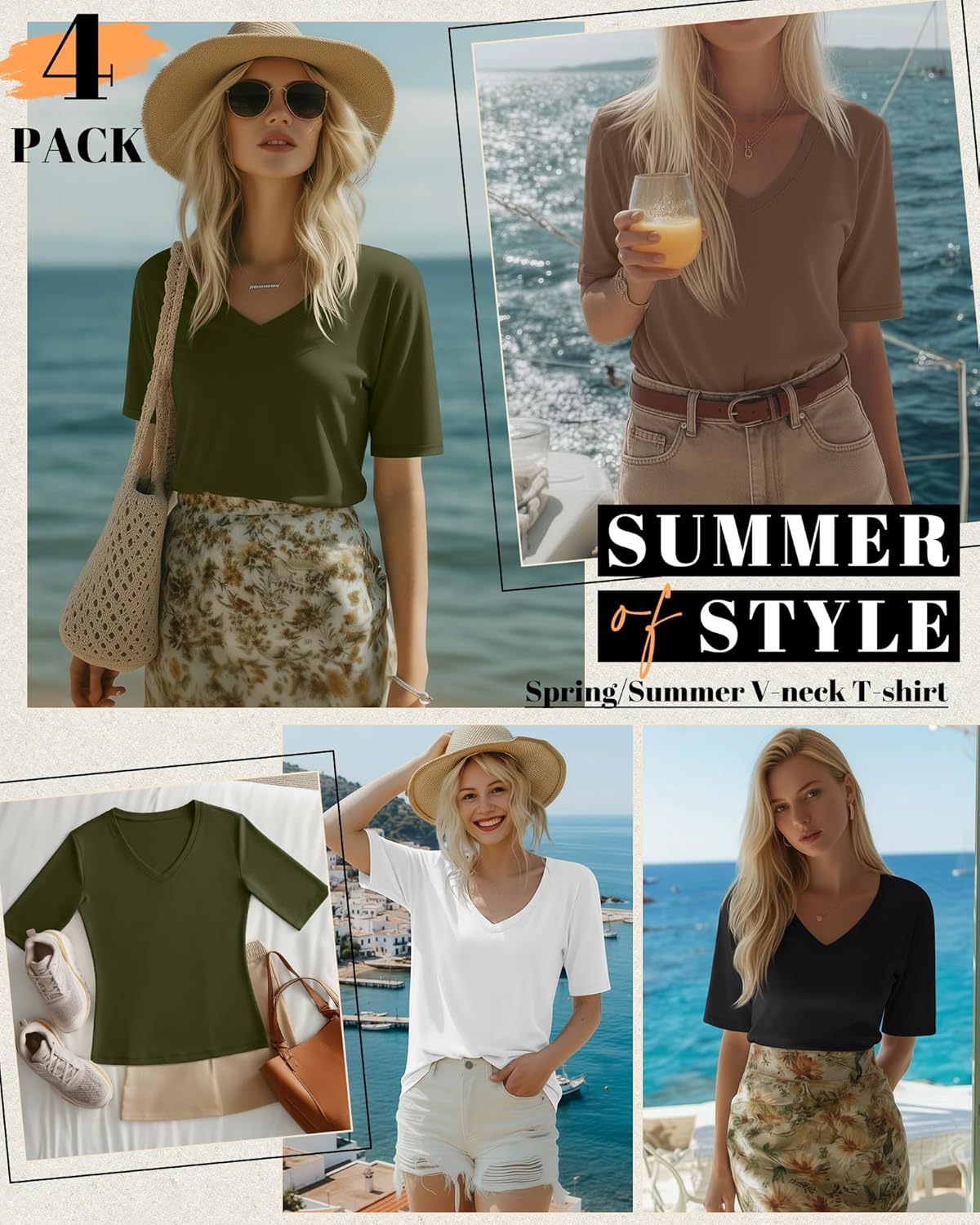 Be the first to review “4 Pack Women’s Half Sleeve Shirts V Neck Tops Elbow Length Loose Fit Straight Hem T Shirts Casual Summer Tees”