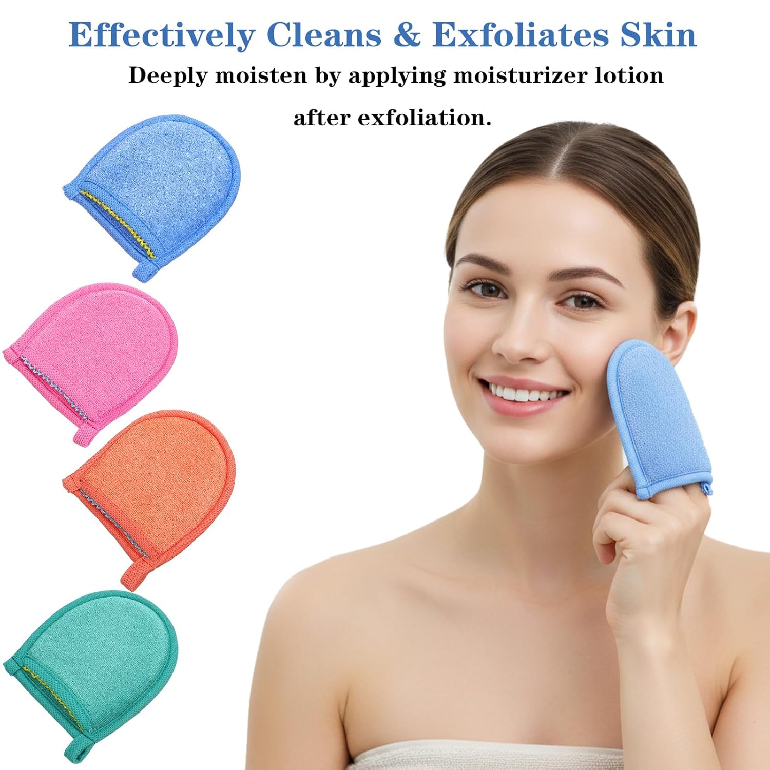 Vibrant 4-Color Set: This pack includes face scrub tool deep exfoliating gloves in four bright colors blue, green, pink, and orange offering options for daily use, easy replacement, or even sharing with family and friends.