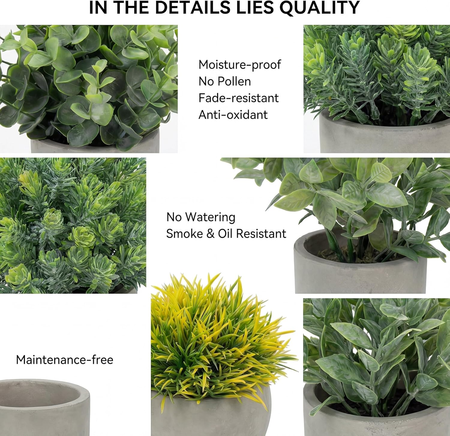5 Pack Fake Plants, Artificial Eucalyptus & Greenery in Cement Pots – Small Potted Faux Plants for Indoor Outdoor Shelves, Desk, Table, Farmhouse Bathroom, Office & Modern Home Decor