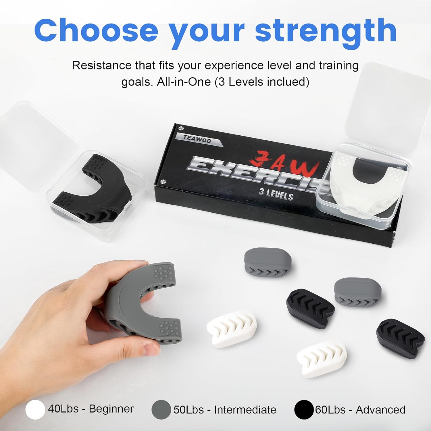 【2 Models Set with 3 Levels】You will receive two latest models of jaw muscle trainers, 3PCS Model 1 and 6PCS Model 2. The jaw toner is suitable for beginners, intermediate, and advanced users with resistance levels of 40 pounds, 50 pounds, and 60 pounds. Just 5-10 minutes of chewing exercises daily can help achieve a well-defined jawline.