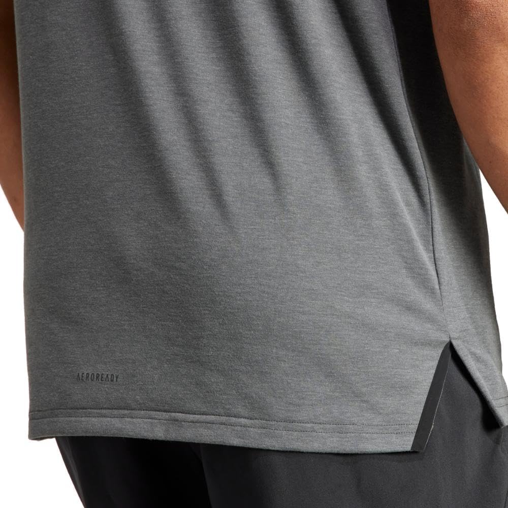 This classic adidas workout t-shirt for men is all you need for your next gym session. It’s cut to fit a bit slim and features an extended hem in back for added coverage on dips, bends and lifts. AEROREADY manages moisture for elevated dryness when you need it most.
