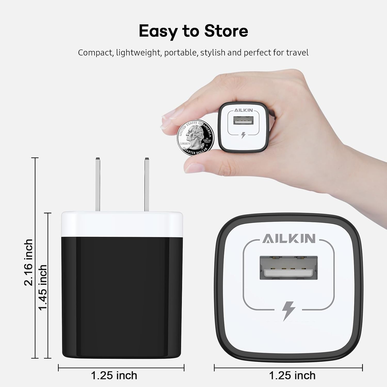 PREMIUM BUILD – AILKIN unique patent USB outlet plug adapter; Pocket-friendly small size cube will provide a dependable source of power, very handy and fast Charge, finger insets on the side make it easy to hold onto.