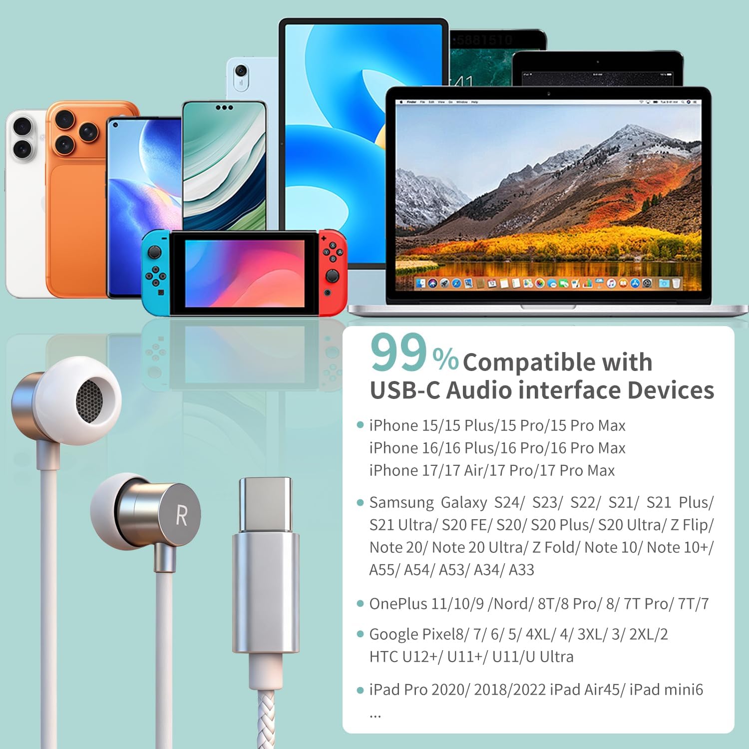 【Modern USB-C Plug & Play Universal Compatibility】 Ready for today’s devices. The direct USB-C connector ensures seamless, zero-latency connectivity with iPhone 15/15 Pro, iPad Pro, Samsung Galaxy S24, Google Pixel, MacBook, and all USB-C laptops/tablets. No adapters needed. A simple, future-proof solution for office, travel, and daily commuting.