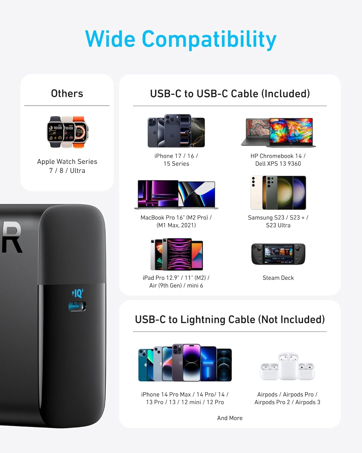 Wide Compatibility: From phones to laptops and more, our proprietary PowerIQ 3.0 technology provides flawless compatibility with virtually any mobile device.