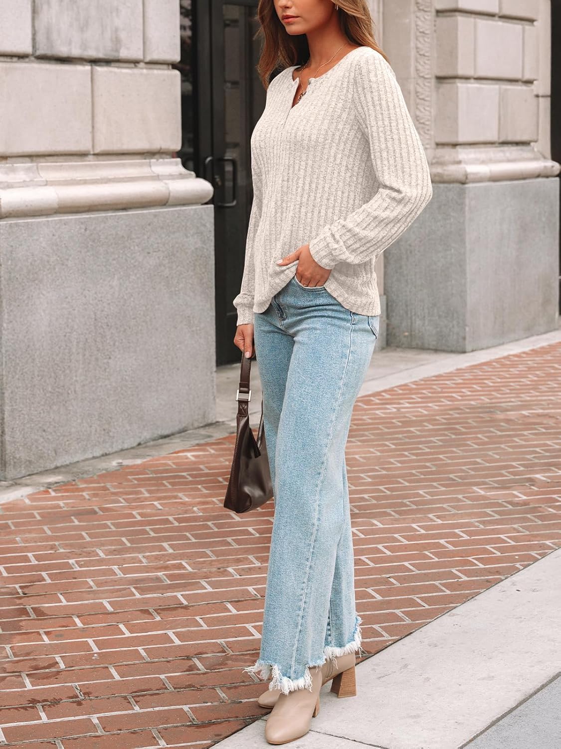 AUTOMET Long Sleeve Henley Shirts Women’s Business Casual Lightweight Tunic Sweater Tops