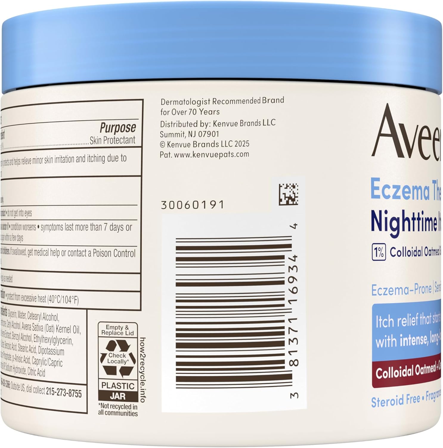 Aveeno Eczema Therapy Nighttime Itch Relief Body Balm is an eczema cream for adults and anti-itch cream designed to deliver soothing, long-lasting relief for dry, itchy skin overnight. This body balm features a moisturizing formula with colloidal oatmeal and ceramide, helps replenish the skin’s natural moisture barrier and provides moisturization while you sleep. The hypoallergenic, non-greasy, allergy-tested formula is fragrance-free, steroid-free, paraben-free & dye-free, making it suitable for sensitive skin and nightly use on the body. Apply this eczema cream for adults as needed at night to lock in moisture and relieve eczema-related itch and irritation, supporting comfort & hydration through the night. The 11 fl oz tub offers value for full-body coverage and is recognized with the National Eczema Association Seal of Approval, ensuring quality and trust. This anti itch cream is part of the Eczema Therapy line, formulated for adults seeking effective eczema relief and intense overnight moisturizing. The balm form is ideal for those who prefer a non-greasy, easy-to-apply texture that absorbs quickly and leaves no residue. Suitable for use on sensitive, dry, and eczema-prone skin, this body balm can be incorporated into your nightly skincare routine to help maintain skin comfort and moisture. A dermatologist-recommended brand, Aveeno Eczema Therapy Nighttime Itch Relief Body Balm by offering a targeted, intensive solution for nighttime eczema relief, making it a trusted choice for adults who need reliable, soothing care for their skin.
