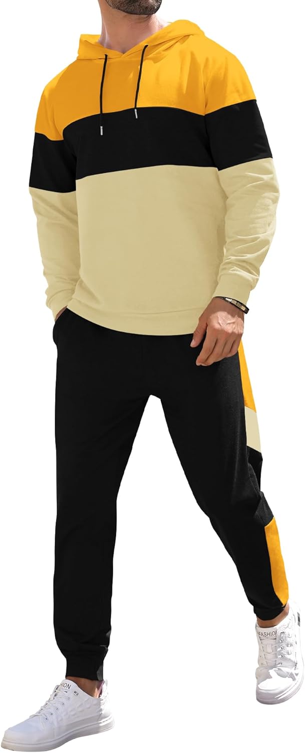 Babioboa Men’s Tracksuit 2 Piece Color Block Hoodie Set Pullover Sweatshirt and Jogging Sweatpants Athletic Sweatsuits Set