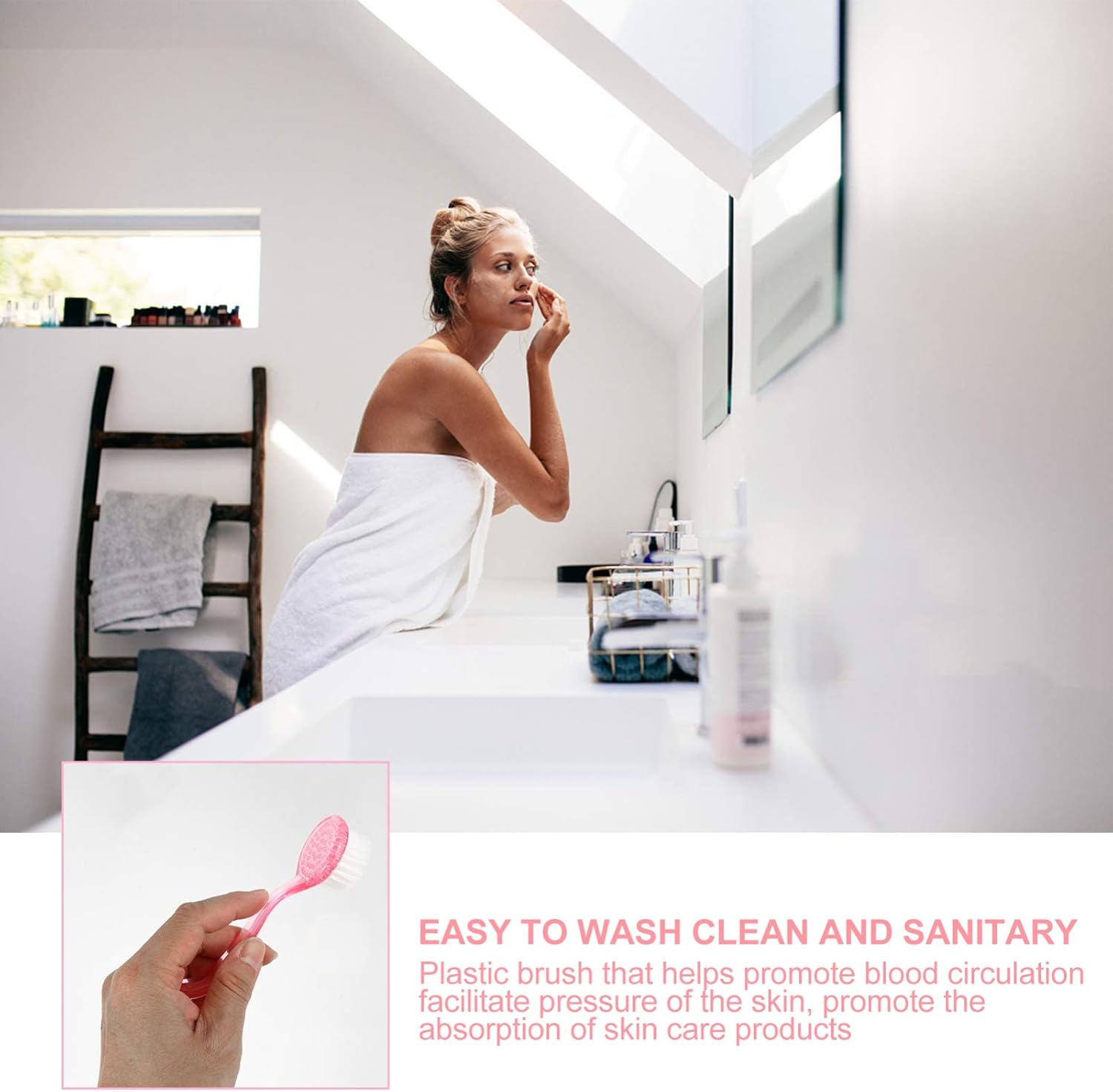 facial exfoliator brush Natural bristles are strong, yet flexible enough to avoid irritation; ergonomic handle is easy to grip.