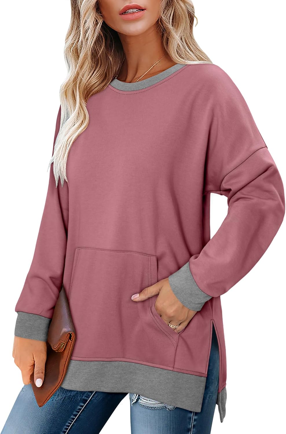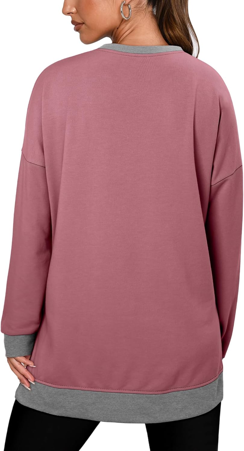 BETTE BOUTIK Womens Oversized Sweatshirt Crewneck Long Sleeve Tunic Pollover Shirt Side Slit Tunic Sweatshirt 2025