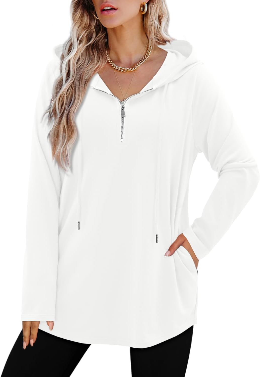 Womens Quarter Zip Tunic Long Hoodies Pullover Hooded Sweatshirts Tops
