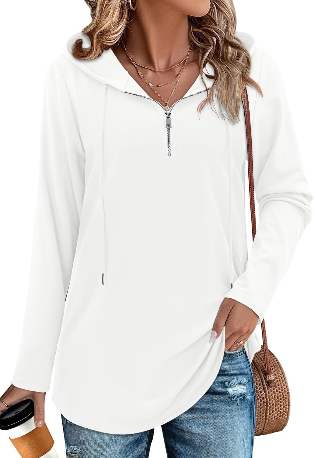 Features: Womens quarter zip pullover hoodies long tunic hooded sweatshirt,long sleeve,side hidden pockets,zipper and pull string, comfortable, fashionable,completes a more fashionable look.the basic solid color matches everything,floral pattern for choice.