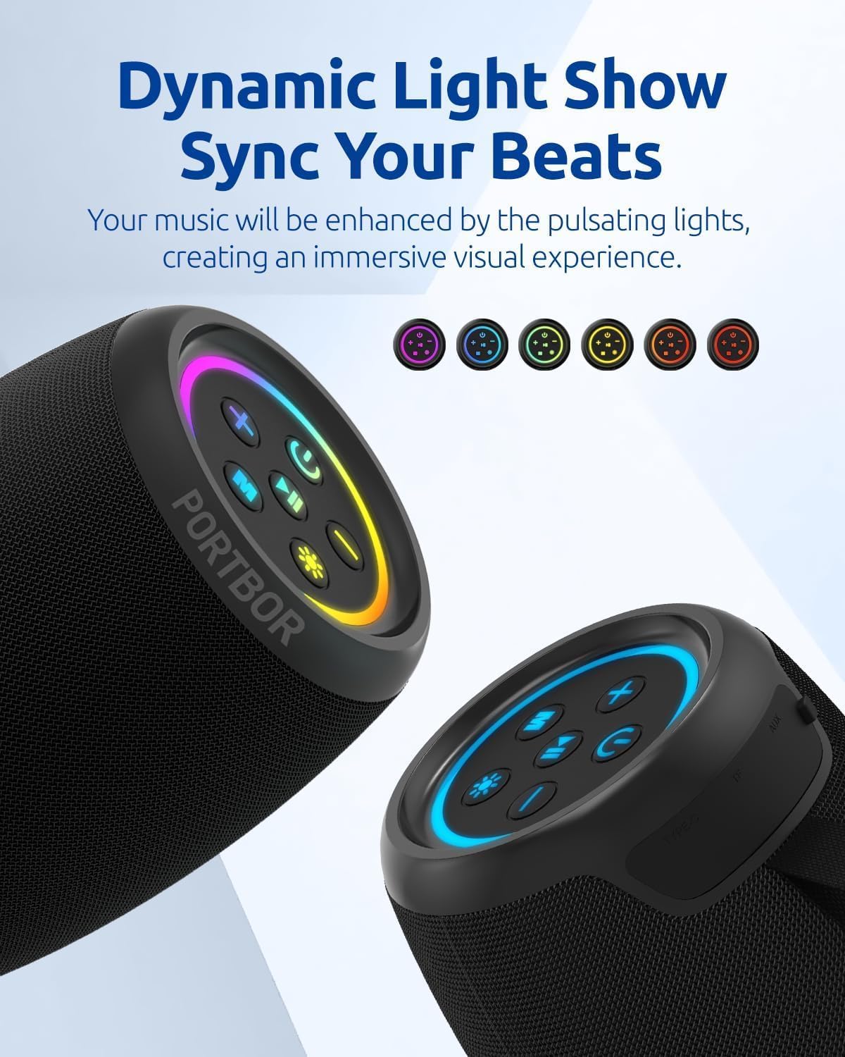 Powerful Sound : The PORTBOR portable Bluetooth speakers deliver impressive clear stereo loud sound through its small body, brighting a rich and immersive listening experience. The speakers’ stereo surround dual pairing technology provides an enhanced and shocking audio experience.