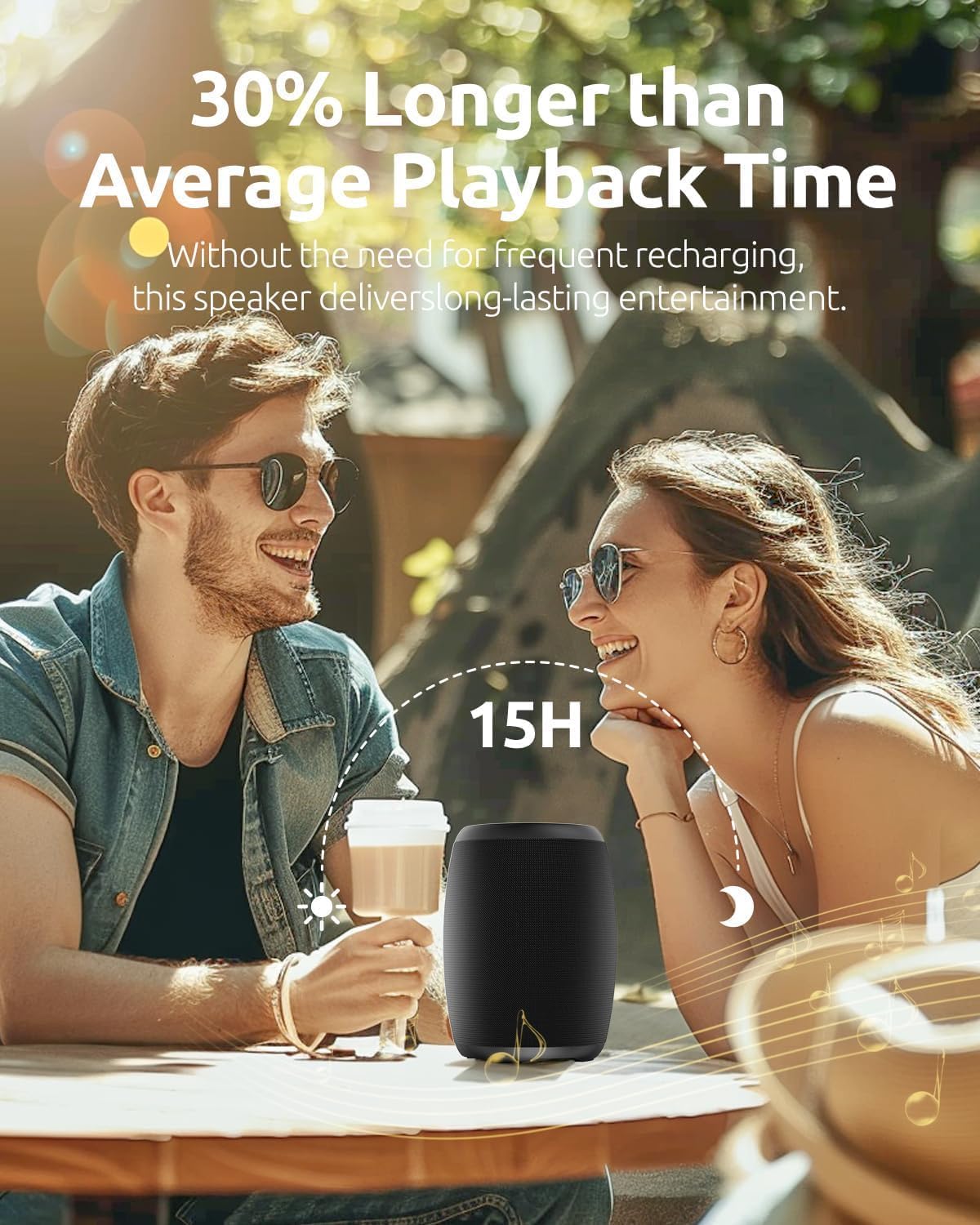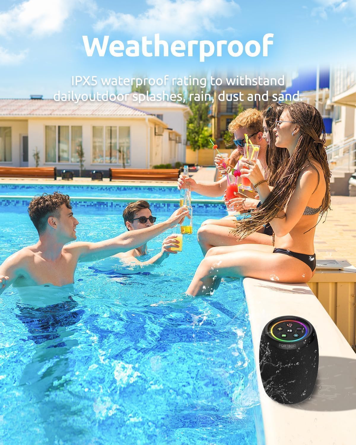 The PORTBOR Bluetooth speaker delivers impressive clear stereo loud sound through its small body, makes for a strong midrange, clear bass, and full treble, brings you a rich and immersive listening experience.
