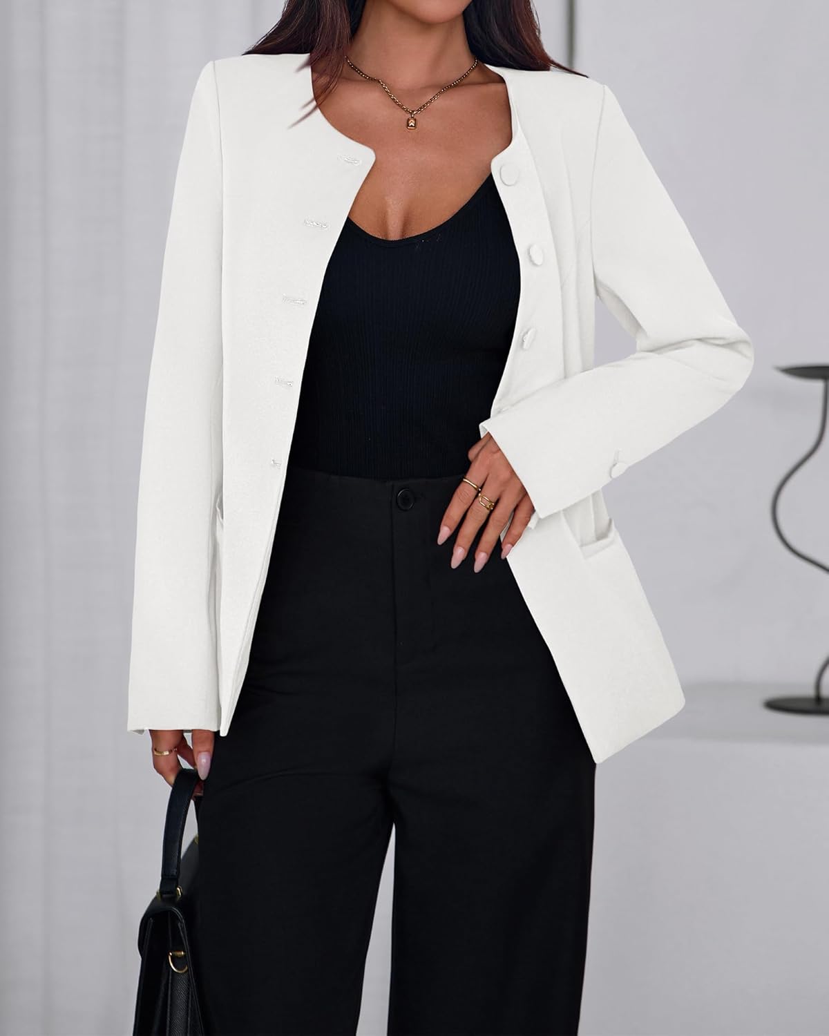 BTFBM Blazers for Women Business Casual Open Front Long Sleeve Button Work Office Suit Jackets Dressy Blazer Pockets
