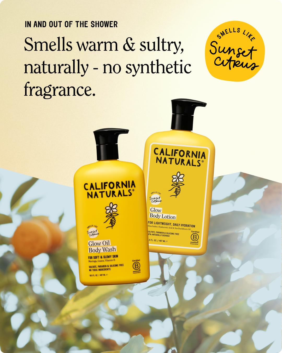 98% NATURALLY DERIVED INGREDIENTS: Clean, safe, and effective. Free from parabens, phthalates, hormone disruptors, synthetic fragrances, and harsh chemicals. Naturally scented with Sunset Citrus for sun-kissed California vibes.