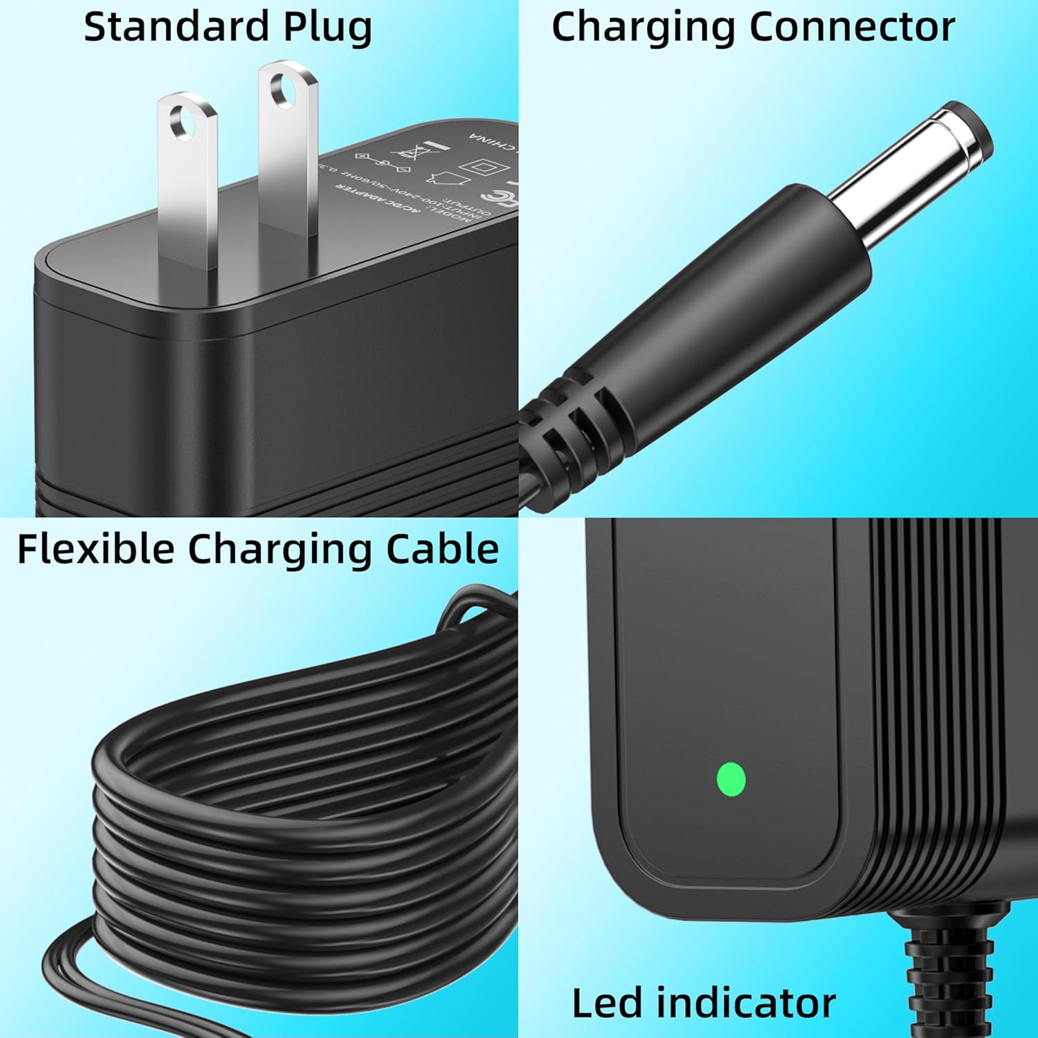 Input: AC 100-240V 50-60Hz; Output: DC 26.5VCE FCC Listed5.9ft/1.8m Long Power CordPackage included: 1x adapter replacement for Homeika H320 Cordless Vacuum