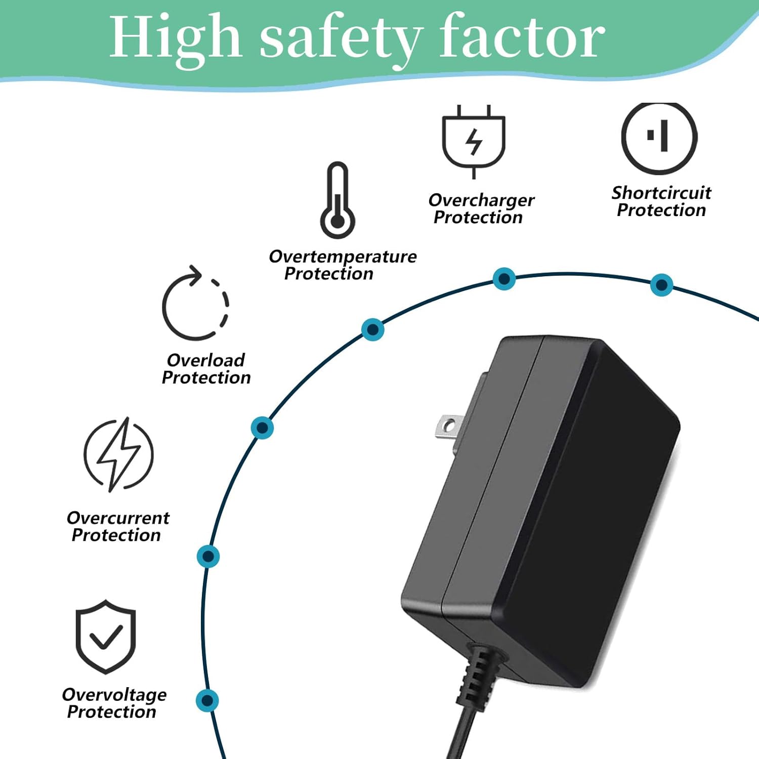 【High safety factor】Our charger is made of advanced IC chip with voltage protection, current protection, temperature protection, overload protection