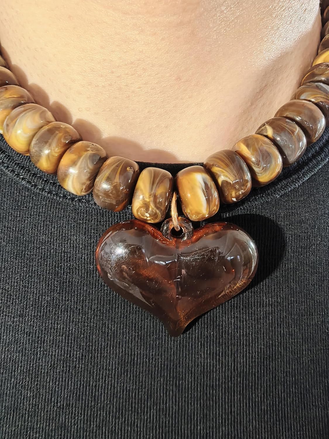 Make a bold fashion statement with these eye-catching beaded choker necklaces featuring charming heart pendants. Each necklace showcases chunky, luminous beads in vibrant colors including hot pink, turquoise green, sunny yellow, and warm brown tones. The uniform bead sizing creates a perfectly balanced look, while the polished finish adds an elegant shine. The heart-shaped pendant adds a sweet, romantic touch to complete each piece. These versatile boho-style chokers can elevate both casual and dressy outfits. The substantial beading provides a dramatic look while remaining comfortable to wear. Perfect for adding a pop of color to your jewelry collection, these necklaces can be styled individually or layered together for an even more striking effect. The durable construction ensures these statement pieces will become lasting favorites in your accessory rotation.