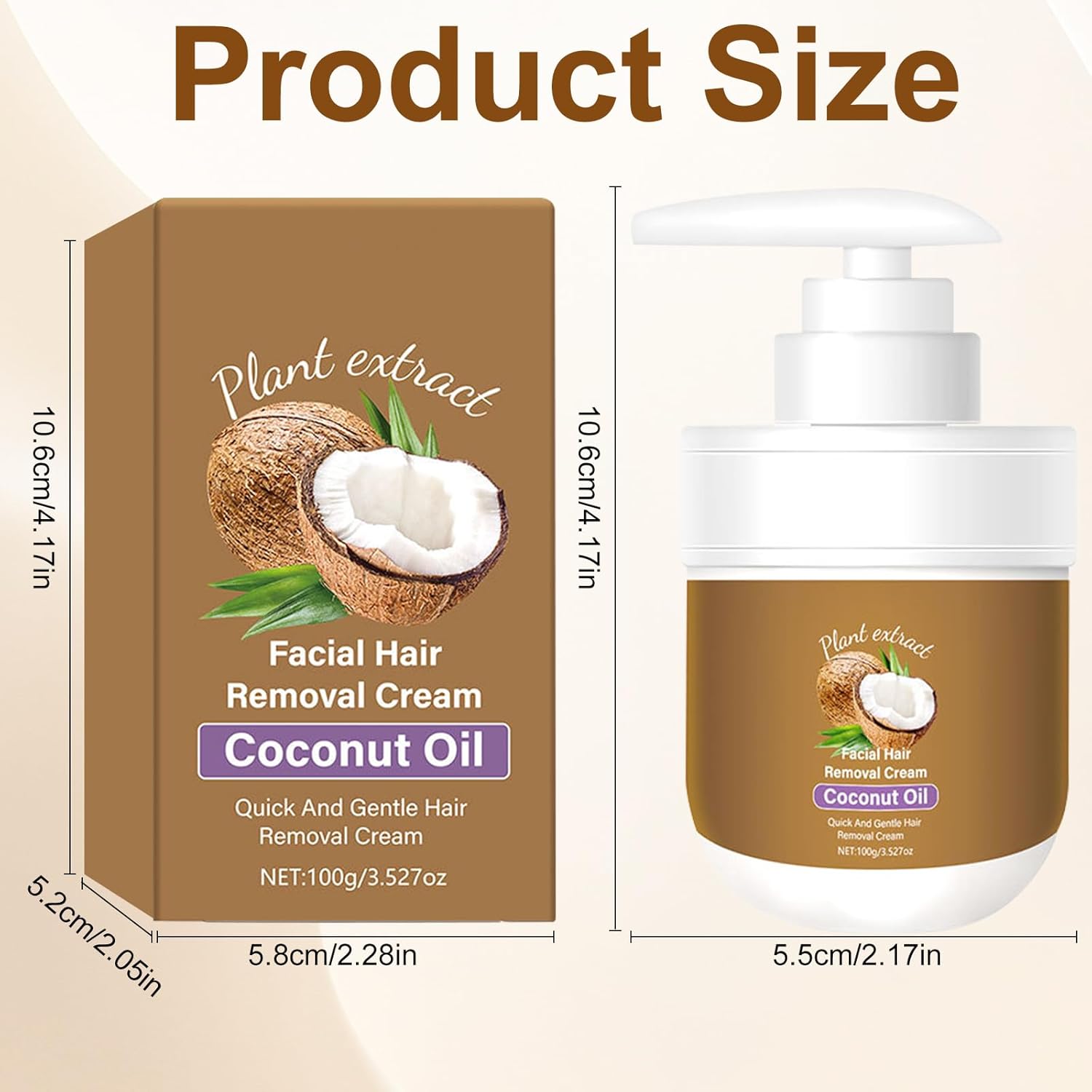 Coconut Oil Facial Hair Removal Cream for Women – Removes Hair From Chin, Upper Lip, Plant Extract, Mild and Non-Irritating (3.52oz)
