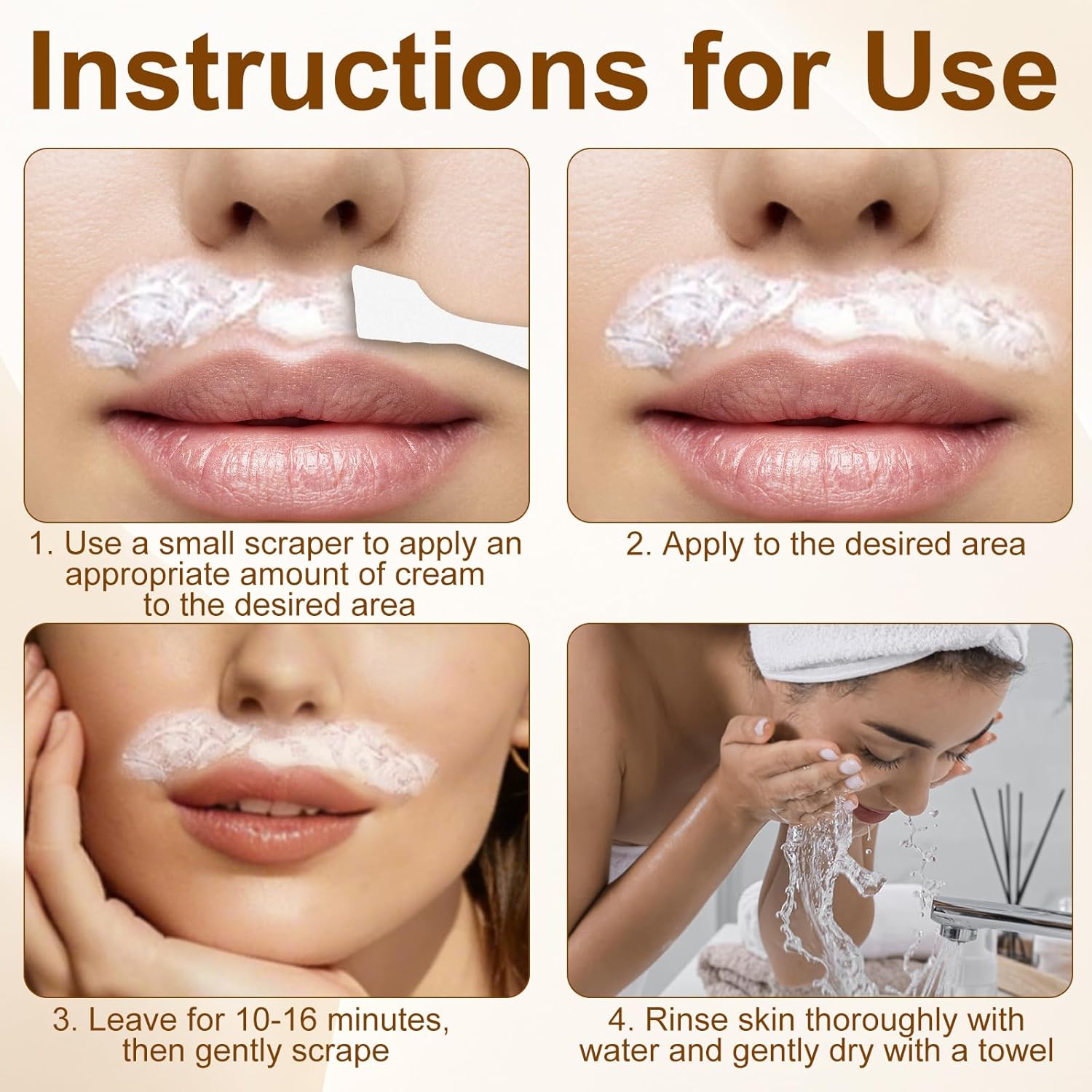 Easy to Use Design: Simply pair with a small plastic spoon or cotton swab to operate at home. Face hair removal cream is smooth and non greasy, and easy to use without burden