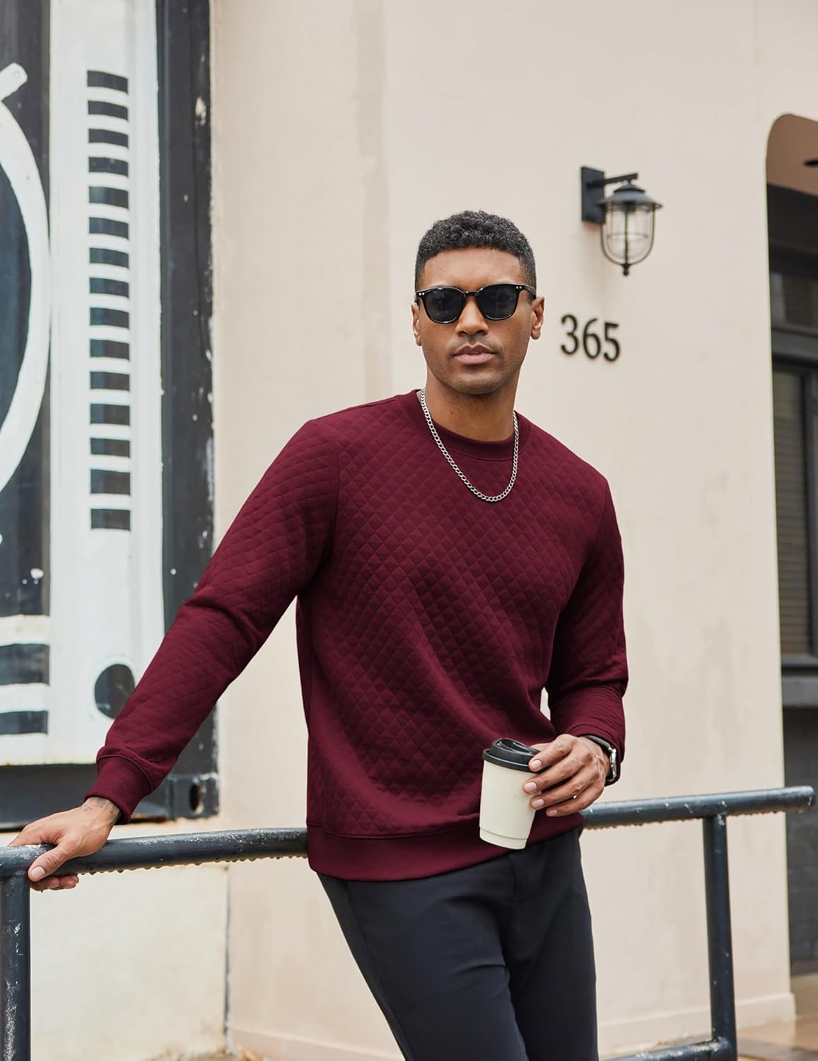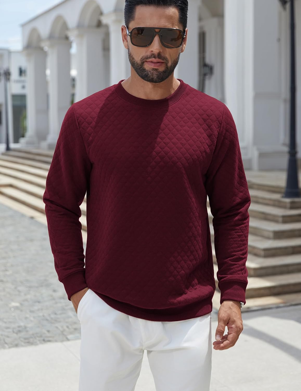 COOFANDY Men’s Crewneck Sweatshirt Argyle Sweater Diamond Quilted Pullover men sweatshirtsmen sweatshirts
