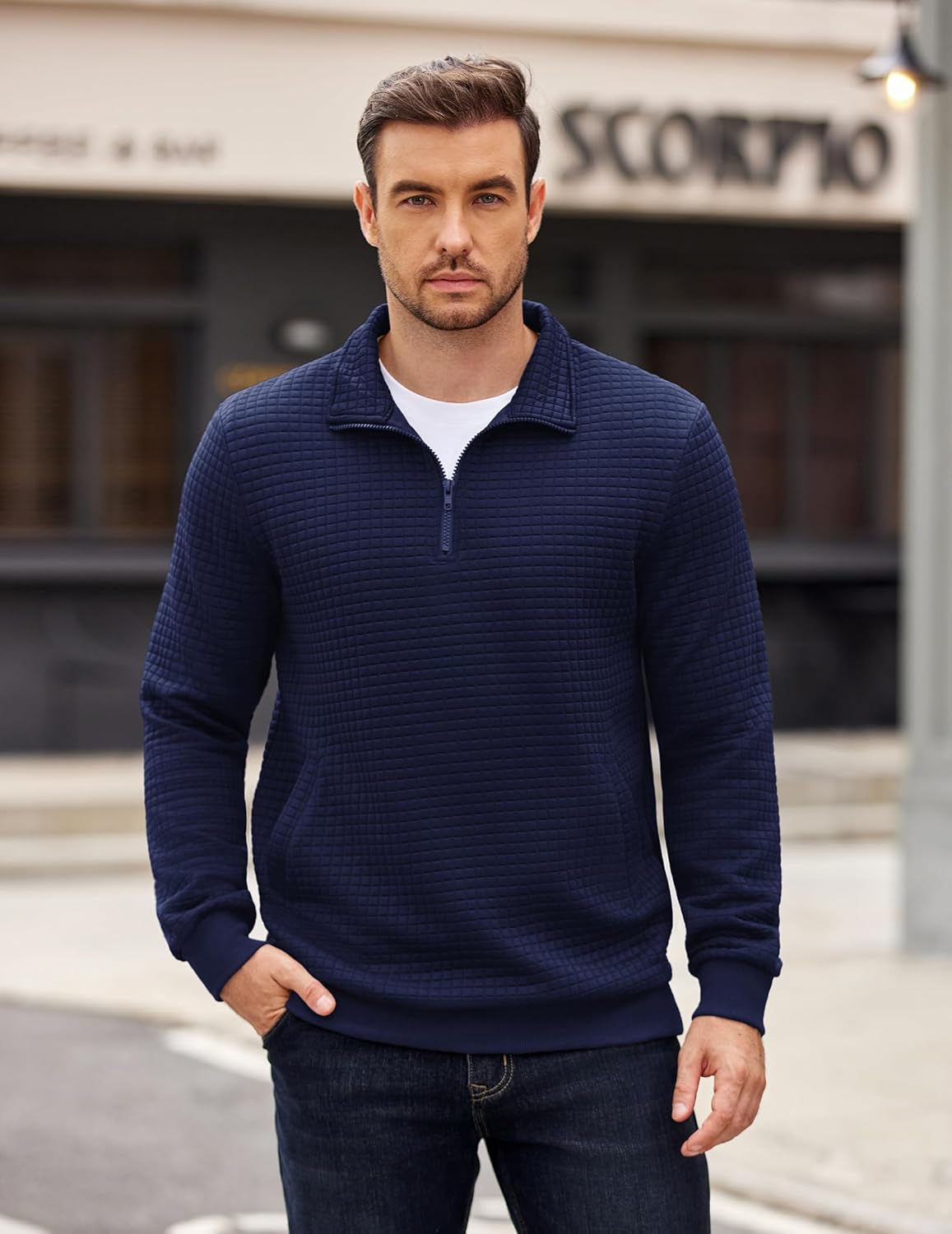 Coofandy Quilted Quarter Zip Pullover for Men Long Sleeve