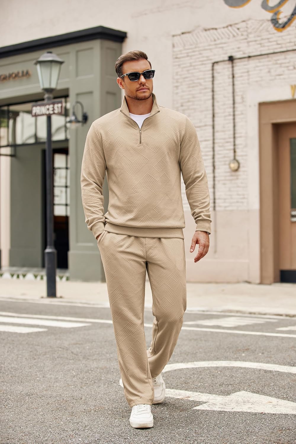 COOFANDY Men’s Tracksuit 2 Piece Set Geometric Texture Quarter Zip Pullover Sweatshirt Athletic Running Sweatsuits