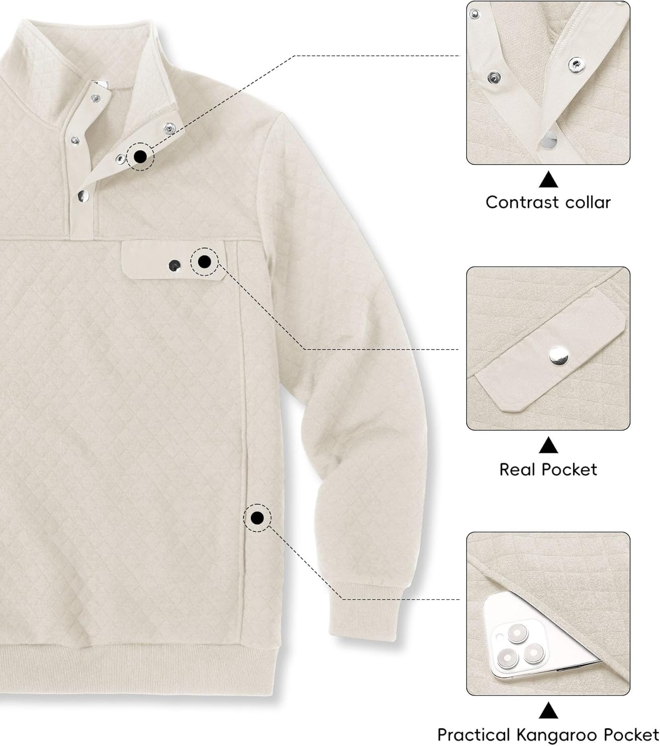 COOFANDY Quilted Sweatshirts for Men Quarter Button Pullover Sweatshirt Stand Collar Outdoor Polo with Pockets