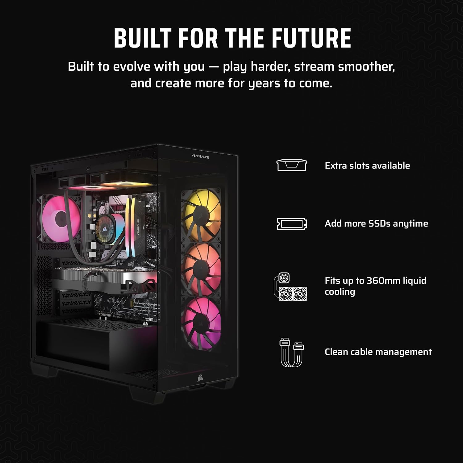 Corsair Vengeance i7500 Gaming PC – Liquid Cooled Intel Core i9-14900KF CPU – NVIDIA GeForce RTX 5080 GPU – 32GB Vengeance RGB DDR5 Memory – 2TB M.2 SSD – Black