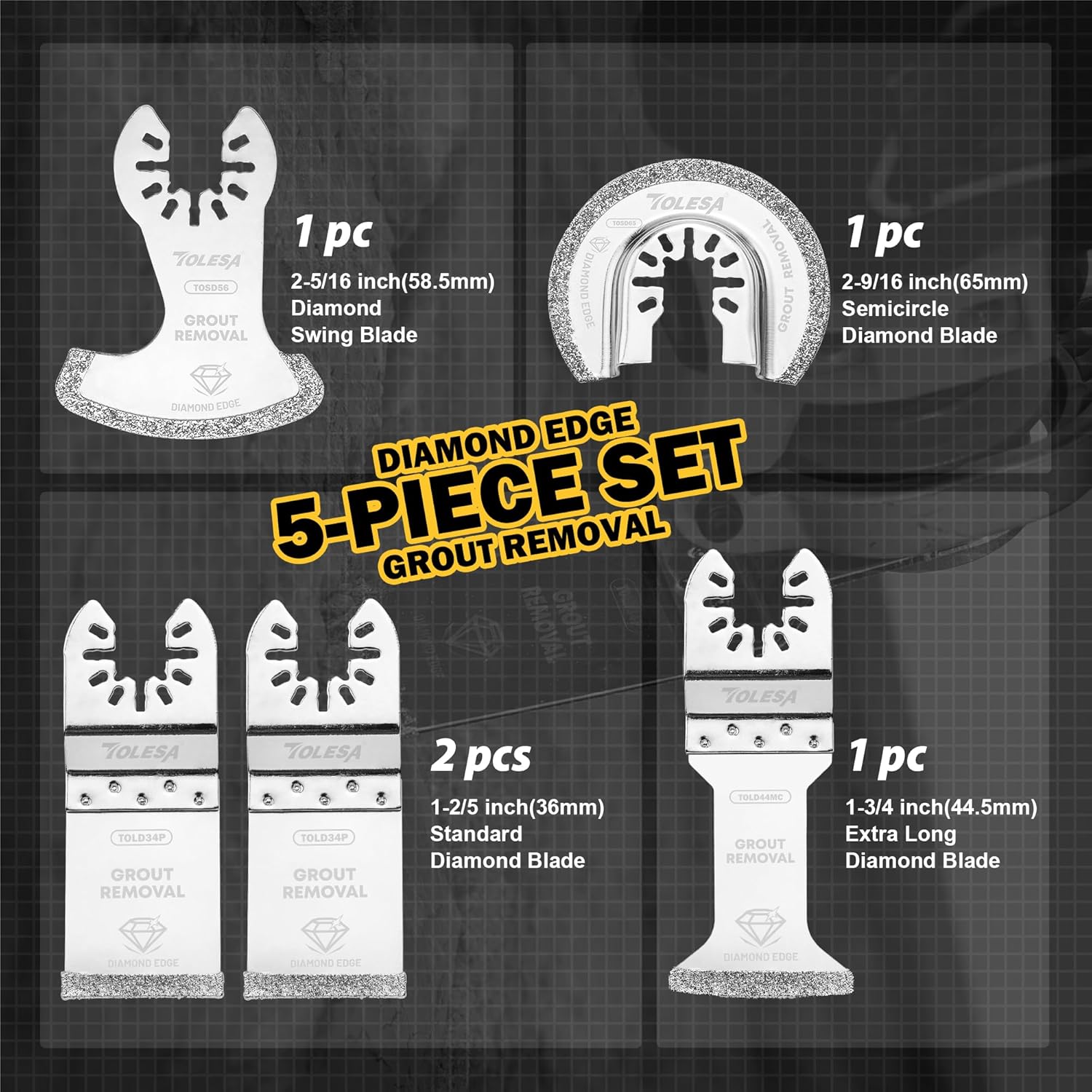 【Multi-application】TOLESA diamond oscillating blade diamond can be used for bathroom renovation, flooring work, trimming and correcting work, remove grits or grouts, clean up the mortar before fixing, and various household maintenance around the house
