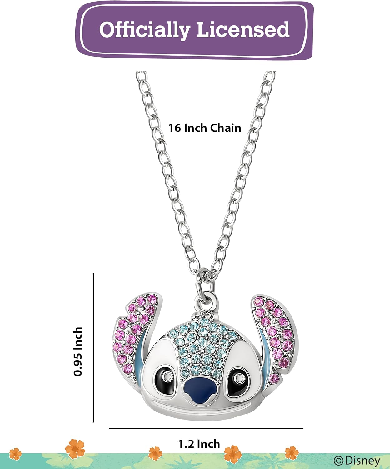 Officially licensed Lilo Stitch necklace is an out-of-this-world piece of jewelry that truly sparkles. The pendant, featuring Stitch’s smiling or standing face, is adorned with multicolored pave crystals and colorful enamel plating, creating a striking and eye-catching look.