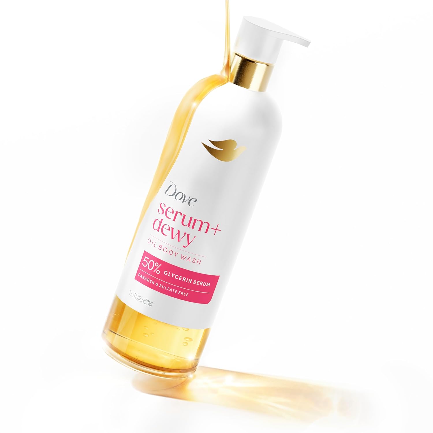 Experience luxurious hydration like never before with Dove Dewy Oil Body Wash. Co-created with dermatologists and beauty experts, this indulgent formula is designed to elevate your shower routine while delivering deep nourishment and radiant skin. Infused with 50% glycerin and a 50% glycerin serum , the rich, oil-based formula transforms into a creamy lather that drenches your skin in moisture—without leaving behind any greasy residue. It’s a sensorial treat that leaves your skin feeling soft, smooth, and glowing with a dewy finish. The scent is just as pampering: notes of coconut oil and geranium create a warm, floral aroma that soothes the senses and adds a touch of elegance to your daily ritual. Whether you’re starting your day or winding down, this body wash turns every shower into a moment of self-care. As the #1 dermatologist-recommended brand, Dove brings trusted skincare expertise to every bottle. Dewy Oil Body Wash is thoughtfully formulated to be gentle on skin while delivering visible results you can feel and see. Treat your skin to the hydration it craves—and the glow it deserves—with Dove Dewy. Because radiant skin starts in the shower