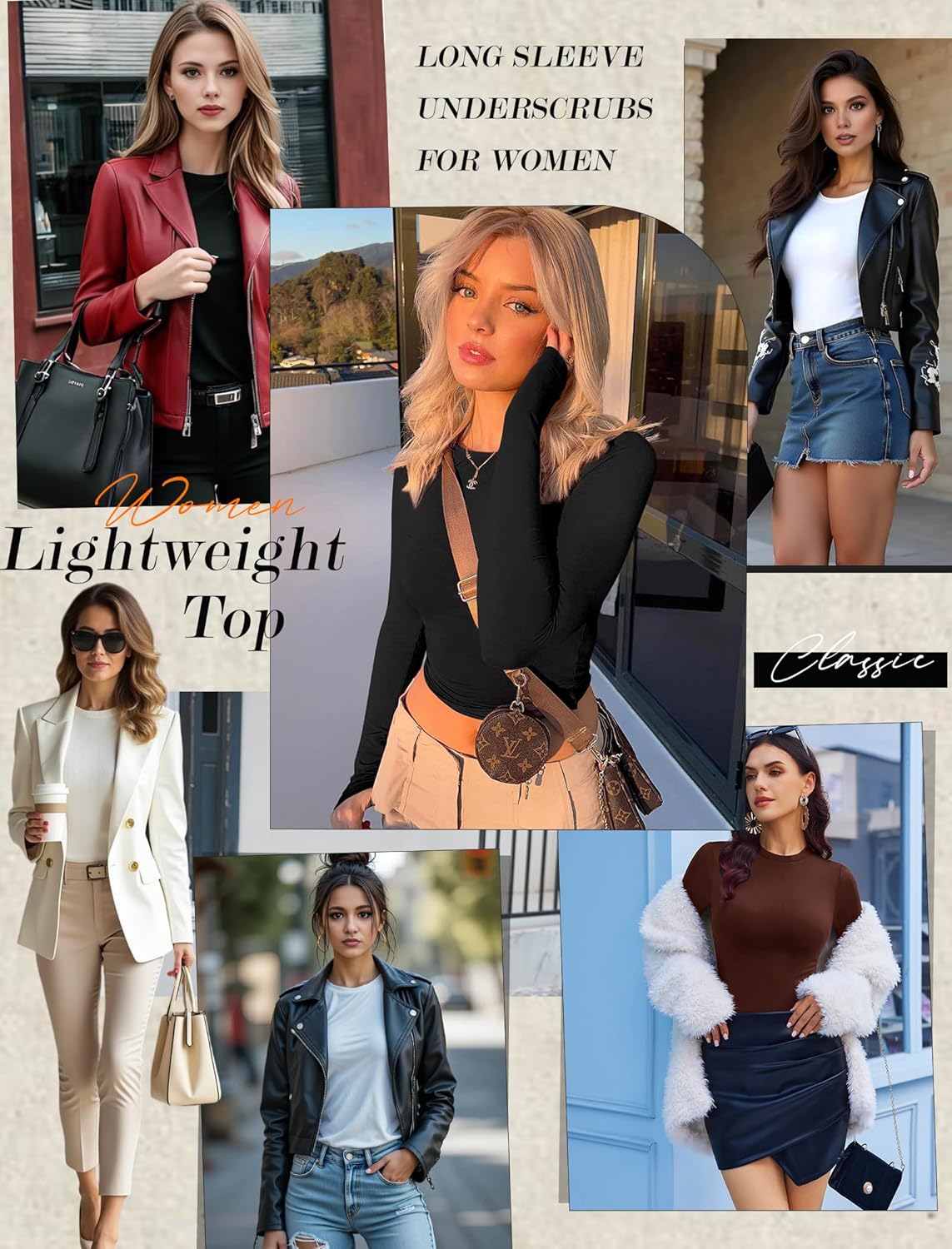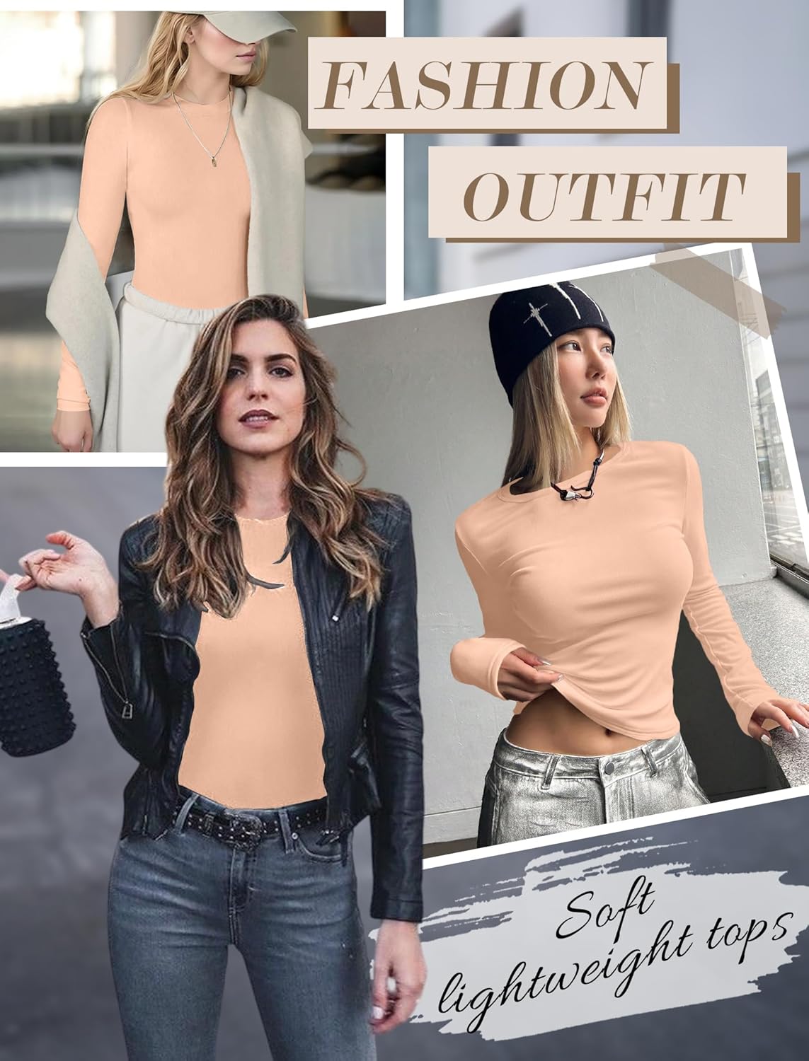 Ekouaer Women Long Sleeve Shirts Thermal Underwear Tops Round Neck Undershirts Slim Fit Basic Tees Soft Lightweight Tshirts
