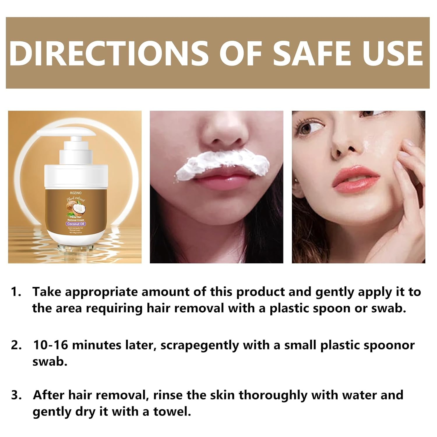Gentle Formula for Sensitive Skin: Infused with nourishing coconut oil, our hair removal cream features a soothing formula that effectively removes hair while protecting and hydrating delicate skin. Gentle enough even for sensitive skin types.