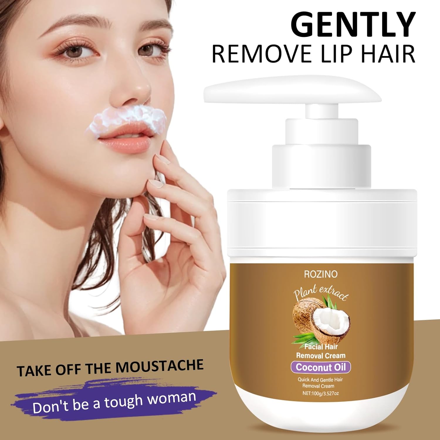 Facial Hair Removal Cream, Soothing Hydrating & Painless Formula for All Skin Types with Coconut Oil, Depilatory Cream for Women & Men,100ml (1)