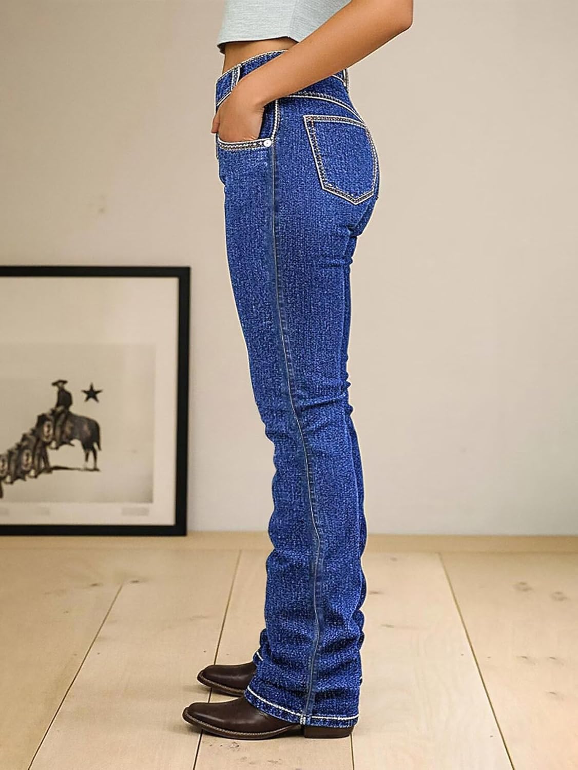 Be the first to review “Flamingals Bootcut High Waist Wash Stitch Detail Button Up Women’s Jeans Stretchy Trendy Denim Pants”