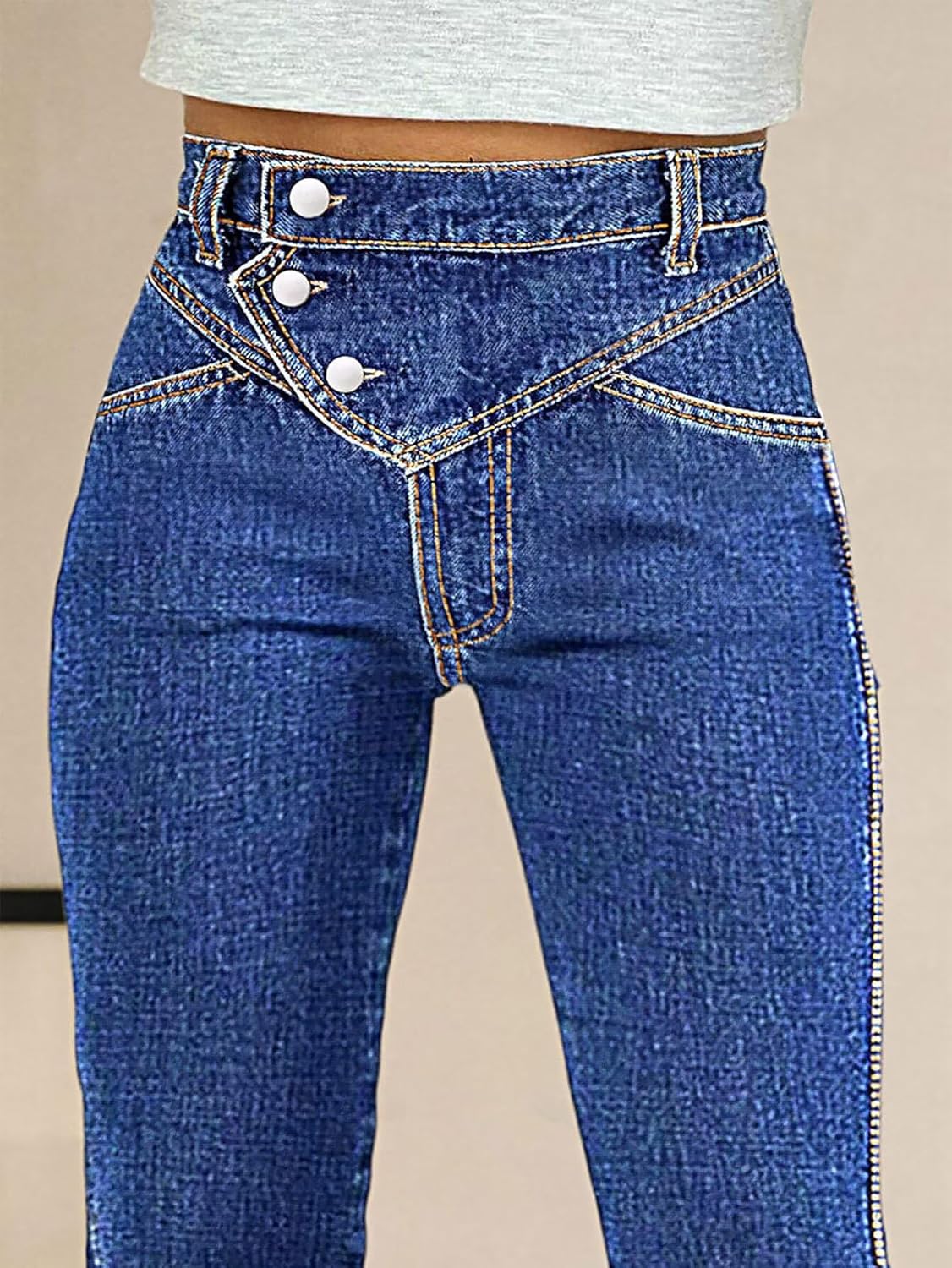 Flamingals Bootcut High Waist Wash Stitch Detail Button Up Women’s Jeans Stretchy Trendy Denim Pants