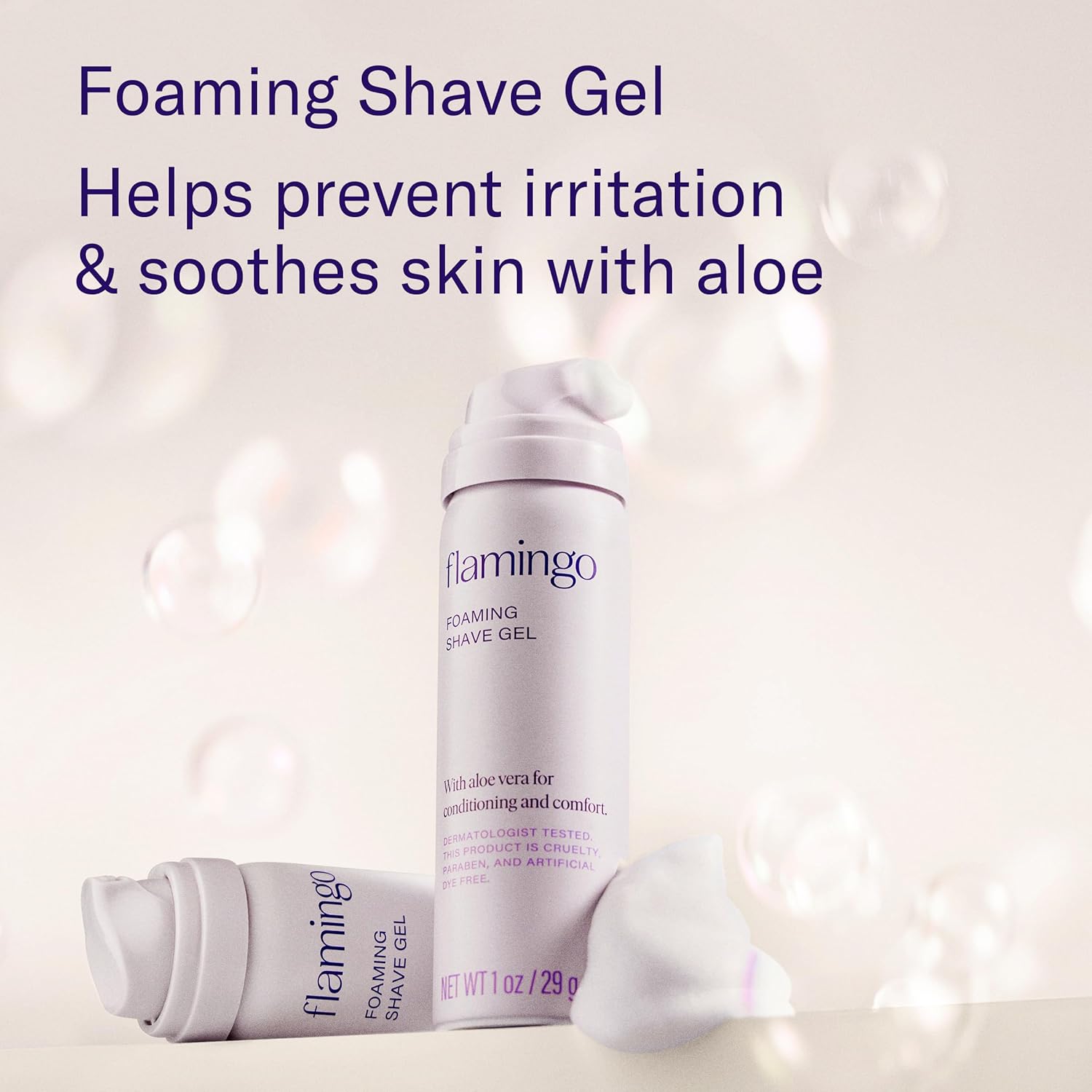 Flamingo Travel Razor Kit for Women – Body & Pubic Razor – Mini Handle, 2 Blade Refills, 2 Travel Size Foaming Shave Gels & Vented Case – Perfect Stocking Stuffer