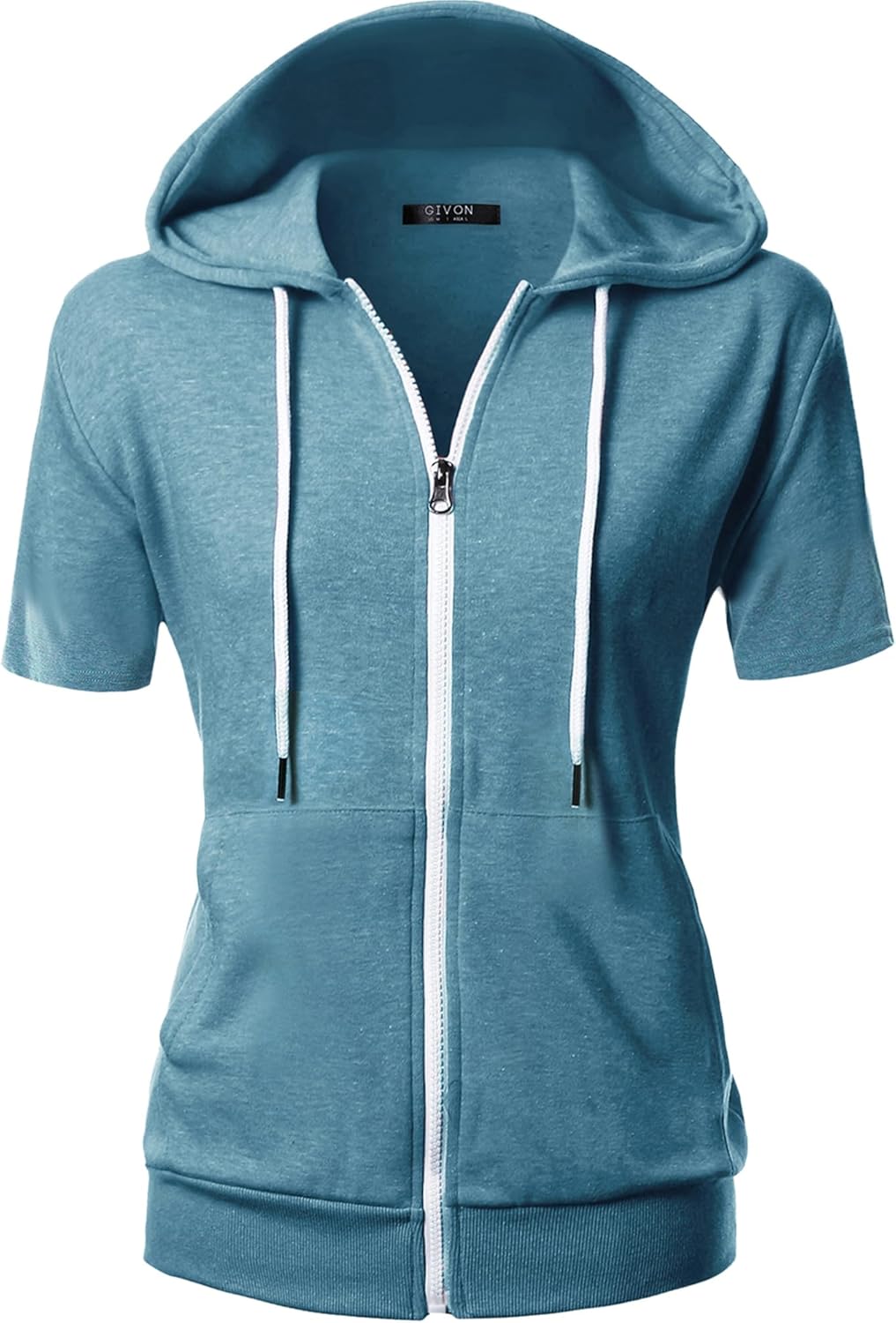 GIVON Womens Slim Fit Zip Up Hoodie Short Sleeve Thin Jacket Full Zip Sweatshirt with Plus Size