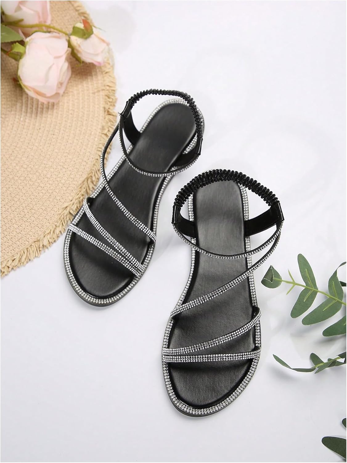 GORGLITTER Women’s Rhinestone Flat Sandals Glitter Open Toe Sparkly Summers Dressy Beach 2025 Slides Shoses
