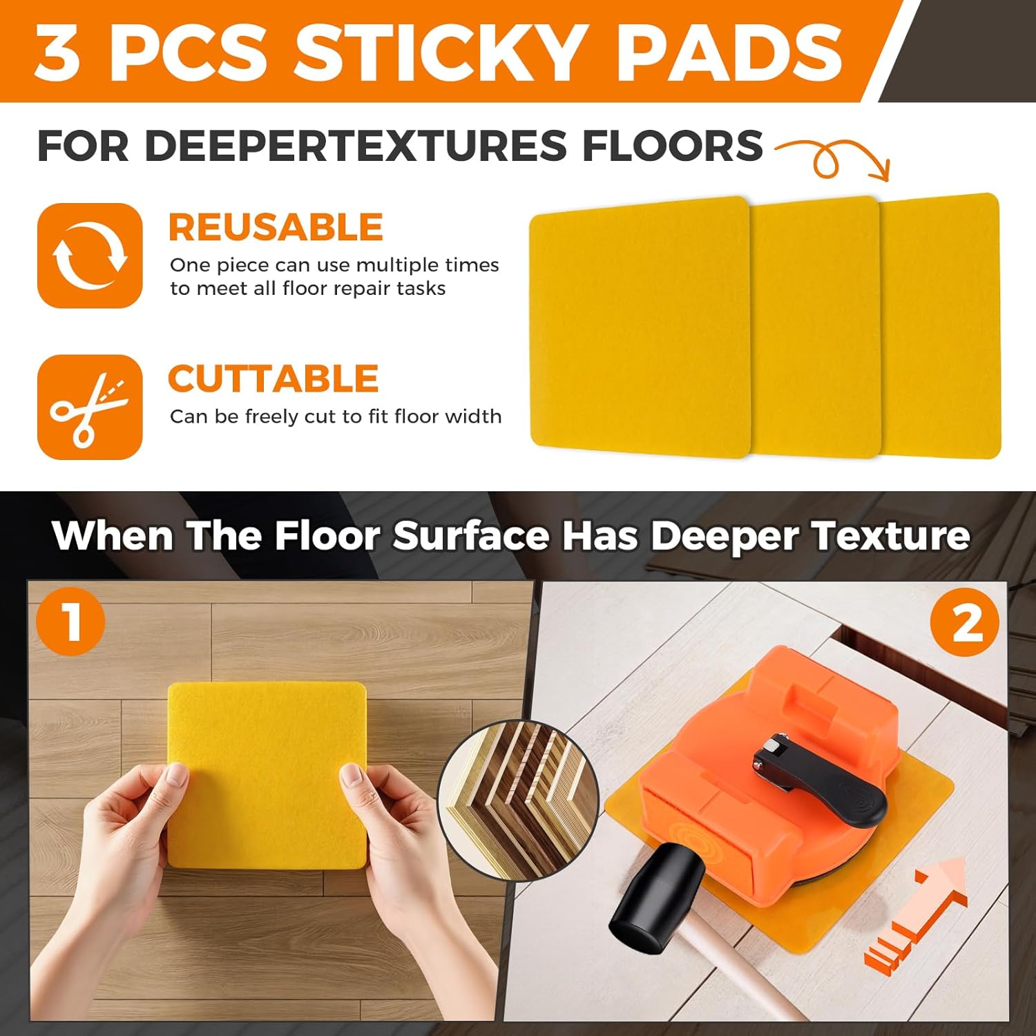 Heavy Duty Floor Gap Repair Tool with Vacuum Suction Cups , 3 Reusable Patches, Plank Grab for Laminated Vinyl Wood Flooring Gap Filling & Mounting